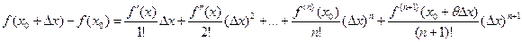 Тогда, если принять a = x0, x – a = Dx, x = x0 + Dx, формулу Тейлора можно записать в виде: