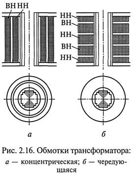 Обмотки трансформаторов могут быть концентрическими и чередующимися (рис. 2.16).