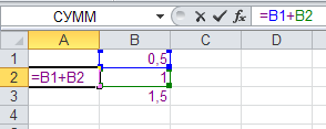Например, на рис. 2.7 приведен пример копирования ячейки А2 с формулой =В1+В2 (содержащей относительные ссылки) в ячейку А3. Пример перемещения ячейки А2с формулой =В1+В2 (содержащей относительные ссылки) в ячейку А3приведен на рис. 3.1.