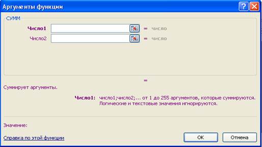 Рис. 4.3. Диалоговое окно Аргументы функции