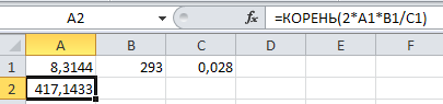 Для вычисления значения квадратного корня от числа будем использовать встроенную в MS Excel функцию КОРЕНЬ(число).