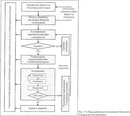 Процесс Управления Изменениями включает в себя следующие виды деятельности для обработки изменений: