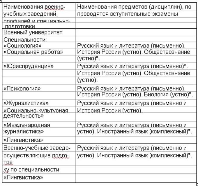 а) с 1 по 20 июля проводится профессиональный отбор в следующие военные образовательные учреждения профессионального образования*: