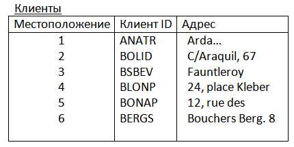 Рис. 2.2. Фрагмент таблицы Клиенты.