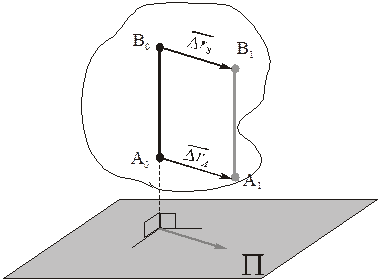 Рассмотрим тело, совершающее плоскопараллельное движение. Пусть P – опорная плоскость. Между точками тела проведём отрезок АВ