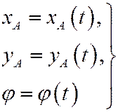 Задавая координаты xA, yA точки А как функции от времени, зададим поступательную часть движения фигуры, а, задавая угол j – вращательную часть движения фигуры.