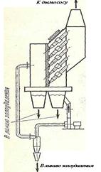 По сравнению с одиночными батарейные циклоны имеют следующие недостатки: повышенную металлоемкость, составляющую 200—500 кг металла на очистку 1000 м3/ч газа, т. е. примерновдвое большую, чем одиночные циклоны; меньшую надежность в эксплуатации из-за возможности неравномерного распределения газа между циклонными элементами и подсоса воздуха через общий бункер; возможность засорения завихривающего устройства при начальной запыленности газа более 100 г/м3.