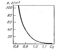 Рис. 6.5. Зависимость коэффициента С 2 от концентрации пыли.