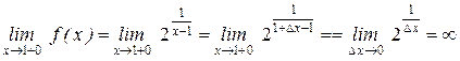 Таким образом, левосторонний предел функции равен 0 и конечен, а правосторонний предел функции равен бесконечности. Следовательно, точка