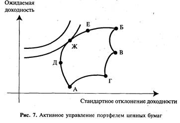 Основой активного управления портфелем является выбор ценных бумаг, приемлемых для формирования портфеля, который может проводиться несколькими способами. Перед активным менеджером стоит задача прогнозирования ожидаемой доходности, стандартного отклонения и ковариации всех доступных ценных бумаг. На основе этих прогнозов определяется эффективное множество, для которого будут построены кривые безразличия. Понятие «эффективное множество» связано со множеством всех оценок допустимых портфелей, которое геометрически изображается множеством точек на критериальной плоскости. Поскольку инвестор при выборе портфелей исходит лишь из оценок их доходности и риска, множество показывает пределы эффективности его выбора.
