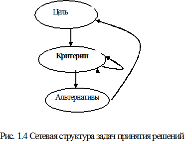 Любая проблема принятия решений в многокритериальных задачах содержит цель, критерии и альтернативы.