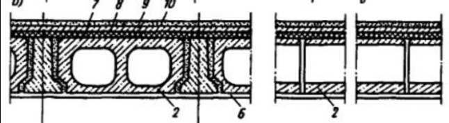 Рис. 28. Перекрытия по сборным железобетонным балкам: а — накатом из сплошных