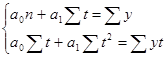 Допустим, явление развивается равномерно и описывается линейной функцией. Нужно рассчитать параметры уравнения