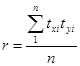 Среднее произведение нормированных отклонений есть линейный коэффициент корреляции r: