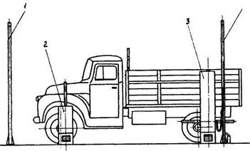 Перед постановкой автомобиля на техническое обслуживание или ^ремонт необходимо очистить автомобиль снизу. Для этого при шланговой | мойке автомобиль вывешивают на подъемнике или опрокидывают на оп-§ рокидывателе. В стационарных механизированных установках при выпол-Ж нении этой сложной операции предусматриваются специальные устройст-*||ра для мойки автомобилей снизу, поставляемые как отдельные агрегаты, |j*«k и в комплекте СМУ. Примером такой установки является модель J м-136, выпускаемая Свирским заводом, обеспечивающая высокоэффек-|, тивную мойку нижних поверхностей автомобиля при наименьших затратах,■: моющей жидкости.