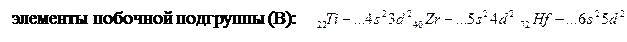Группы делятся на подгруппы: главные (подгруппы А) и побочные (подгруппы В). Подгруппы включают в себя элементы с аналогичными электронными структурами (элементы - аналоги). s- и р – элементы составляют так называемую главную подгруппу, или подгруппу А, d – элементы – побочную, или подгруппу В. Например, IV группа периодической системы состоит из следующих подгрупп:
