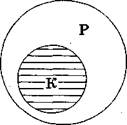 Мы привели примеры сложения и умножения понятий, которые находятся между собой в отношении пересечения {школьник и спортсмен). В других случаях отношений между понятиями результаты сложения и умножения (логическая сумма и логическое произведение), разумеется, будут иными. Читатель без труда сможет определить их для всех случаев отношений между понятиями с помощью круговых схем. Так, если два понятия находятся в отношении подчинения, например, карась и рыба, то результатом их сложения является родовое понятие рыба (т. е. логической суммой понятий карась и рыба будет множество всех рыб) (рис. 18).