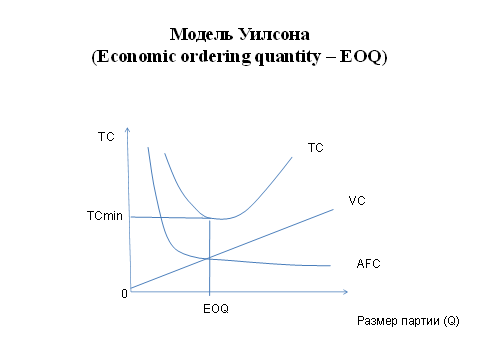 В 1902 г. Уилсон применил математический аппарат к движению запасов и разработал свою модель. Он разделил затраты, связанные с запасами, на два вида: