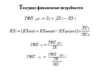 Плановая потребность в оборотном капитале – текущие финансовые потребности.