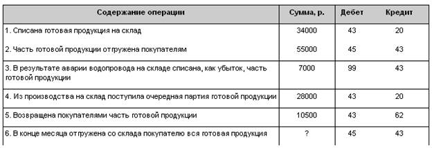 Для решения задачи необходимо собрать счет 43 и определить кредитовый оборот при условии, что сальдо конечное на счете 43 равно нулю, так как вся продукция отгружена со склада (табл. 2).