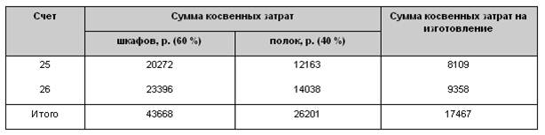 Распределение косвенных затрат по видам изделий производится в пропорции к прямым затратам. На оба вида изделий косвенные затраты распределяются в пропорции 60 и 40% соответственно (табл. 2).