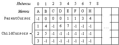 Очевидно, старшинство сыновей, на которые указывают курсоры, возрастает с увеличением индекса поля-массива ChildCursors. Несуществующим (пустым) ссылкам соответствует значение курсора -1.