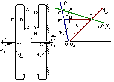 Выберем на водиле Н точку F так, чтобы O2F=O1A (рис. 16). Точка С может быть выше или ниже точки А.