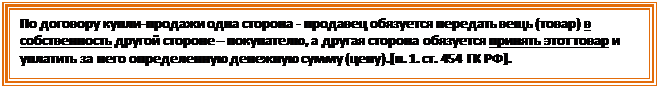 Договор купли-продажи является возмездным, двусторонним, синаллагматическим (т.е. исполнение обязательств покупателем об оплате товаре обусловлено исполнением продавцом своих обязательств по передаче товара [ст. 328 п.1], иными словами покупатель не должен исполнять свои обязанности до исполнения продавцом своих обязанностей).