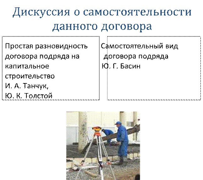 Лишь, в Основах гражданского законодательства 1991 г. соответствующий договор был выделен наряду с договором о выполнении научно-исследовательских, опытно- конструкторских работ, договором на капитальное строительство в главе «Подряд».