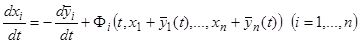 системы (1) может быть заменено исследованием на устойчивость тривиального решения системы (5). Поэтому в дальнейшем без ограничения общности можно считать, что на устойчивость исследуется тривиальное решение или, что одно и то же, расположенная в начале координат точка покоя системы уравнений.