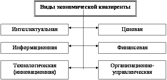 Квазирента - не зависящий от экономической деятельности хозяйствующих субъектов доход от собственности на пользующиеся повышенным спросом воспроизводимые ресурсы или продукты, создаваемые вторичным и третичным секторами народного хозяйства. Другими словами, к вазирента представляет собой сверхприбыль, которую присваивают собственники вследствие монопольного обладания каким-либо неприродным производственным ресурсом. В зависимости от характеристик рентного ресурса выделены следующие разновидности квазиренты (см. рис.).
