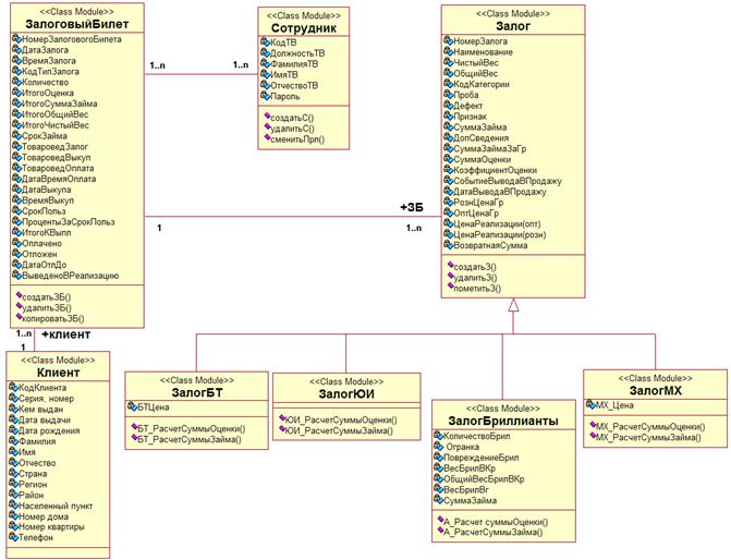 Рис.2.11 Диаграмма классов (инфологическая модель) ИС «Ломбард»