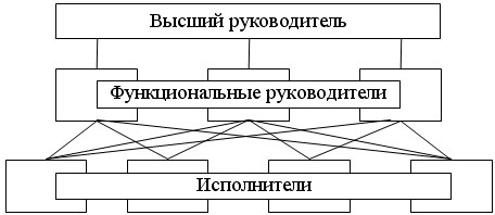 Рис. 22. Органическая структура предприятия, состоящая из рабочих групп (бригад) Основными принципами такой организации управления являются: автономная работа бригад, групп, артелей; самостоятельное принятие решений внутри бригады и координация работ; отсутствие бюрократических связей и возможность привлечения специалистов из других подразделений. Достоинства бригадной структуры: реализация концепции групповой формы (поощряются взаимопомощь, взаимозаменяемость, личная ответственность, ориентация на запросы потребителей, активное сотрудничество в решении проблем); менеджмент носит характер квалифицированных консультаций и опирается на достижение группового согласия; предпочтение отдается людям с универсальными знаниями и навыками; сочетание индивидуальной и коллективной ответственности за качество работы и конечный результат, что снижает необходимость в строгом контроле; оплата труда направлена на стимулирование, предусматривая тесную связь между уровнями заработной платы каждого члена бригады и общими результатами; отход от принципов рациональной бюрократии (специалисты, входящие в состав бригад, не требуются в дополнительных руководящих указаниях сверху, снижение необходимости в услугах дополнительных служб). Недостатки: горизонтальная координация работ взаимосвязанных бригад; проблема нахождения необходимых специалистов; повышенная ответственность за решения. Проектная структура – временная организация, создаваемая для решения конкретной комплексной задачи (разработка проекта и его реализация). Проектное управление комплексными видами деятельности требуют обеспечения непрерывного интеграционного руководства в условиях строгих ограничений по затратам, сроку и качеству работ. В одну команду собираются квалифицированные специалисты разных профессий для производства работ заданного качества в рамках материальных, финансовых и трудовых ресурсов. Проектные структуры различаются по масштабу, широте охвата проблем и отраслей знаний и производства, по характеру взаимодействия с линейными и функциональными звеньями организации. Члены проектной команды подчиняются не только руководителю проекта, но и руководителям тех функциональных подразделений, в которых они постоянно работают. Разновидностью являются матричные структуры (рис. 23). Рис. 23. Матричная структура управления Руководители проекта отвечают за планирование проекта, обеспечения его реализации по всем количествам, качествам и времени показателям. Руководители функциональных подразделений решают, как и где должна быть выполнена та или иная работа и осуществляет функциональную экспертизу проекта. Достоинства матричной структуры: возможность быстрого реагирования и адаптация к изменяющимся условиям; хорошая ориентация на проектные цели; возможность снижения расходов на проектные работы и более эффективное текущее управление; вовлечение руководителей и специалистов в сферу активной творческой деятельности; гибкость и оперативность маневрирования ресурсами при выполнении одновременно нескольких проектов или программ в одной компании; усиление личной ответственности руководителя за проект или программу; возможность применения эффективных методов управления; сокращение времени выполнения проекта; способствует колич