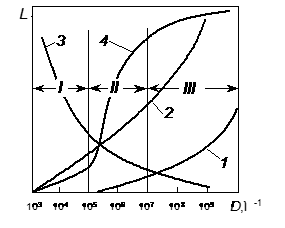 Свойства грубодисперсных и высокодисперсных систем во многом отличаются, но наличие границы раздела фаз и раздробленность одной из них, т.е. дисперсность и гетерогенность, суть то общее, что объединяет эти системы. Изменение свойств при переходе высокодисперсных систем в грубодисперсные происходит постепенно, через среднедисперсные системы. На рис. 1.2 показано влияние размера частиц на некоторые процессы, качественно характеризующие дисперсные системы.
