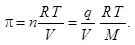 Если масса растворенного вещества равна q, а молекулярная его масса М, то n = q/М; тогда согласно уравнению (9.9) осмотическое давление равно