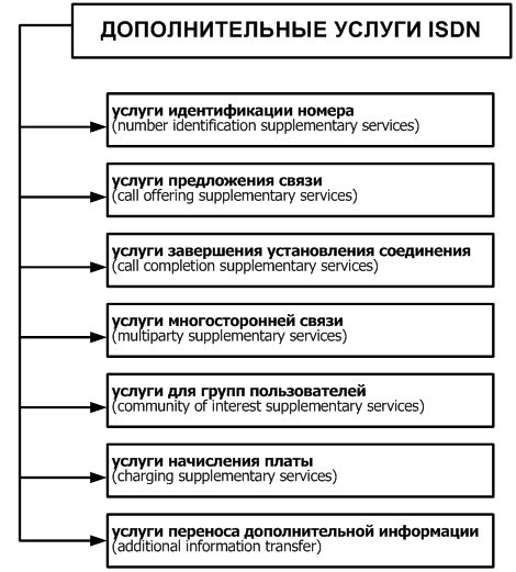 | Телефакс группы 4 | Обеспечивает факсимильную связь с использованием стандартных кодировок и протоколов. Предполагает передачу текста и изображений. Протоколы уровней 4-7: T.70, T.62, T.400, T.503/Т.521/Т.563 |