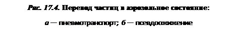 Сыпучие материалы вновь могут быть переведены в аэрозольное состояние под действием воздушного (газового) потока над поверхностью сыпучего материала (см. рис. 17.2) в процессе пневмотранспорта и псевдоожижения (рис. 17.4).