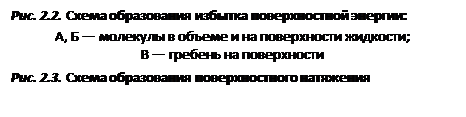 Жидкость всегда стремится к тому, чтобы площадь ее свободной поверхности была минимальной. Если на поверхности жидкости образуется гребень В (см. рис. 2.2), то в соответствии с условием минимальной поверхностной энергии [уравнение (2.1)] гребень исчезает и поверхность жидкости становится идеально гладкой.