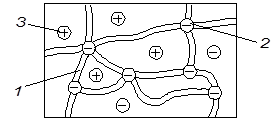 Ионный обмен – это обратимый процесс эквивалентного (стехиометрического) обмена ионами между раствором электролитов и твердым телом (ионитом). Иониты, которые еще называют ионо-обменниками или ионообменными сорбентами, представляют собой вещества, способные к ионному обмену при контакте с растворами электролитов. Ионит имеет две группы ионов (рис. 6.7), одна из них содержится в фазе ионита, а другая способна диссоциировать и является электролитом.