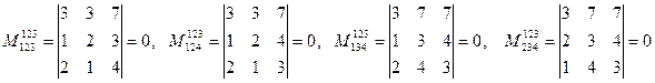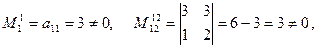 Определитель матрицы Аk называется минором k-гo порядка (минором порядка k) и обозначается или, когда не важно, какие именно строки и столбцы выбраны, обозначается Mk, т.е. по определению Mk = det Аk. Например, если