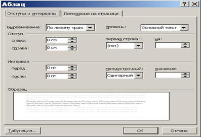 Форматирование шрифта выполняется через меню Главная → Абзац. Окно для настройки параметров абзаца показано на рисунке.