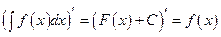 - Производная от неопределенного интеграла равна подынтегральной функции, т.е. если