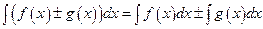 - Неопределенный интеграл от алгебраической суммы конечного числа непрерывных функций равен алгебраической сумме интегралов от слагаемых функций.