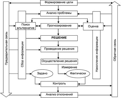 Далее под управлением будем понимать целенаправленное воздействие на коллективы людей для организации и координации их деятельности по достижению целей организации. Такое воздействие возможно, если сформулированы цели, известны правила принятия решений и информация, на основании которой это воздействие осуществляется.