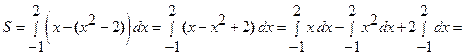 . Так как фигура ограничена сверху графиками двух функций, то для вычисления ее площади разобьем данную фигуру прямой