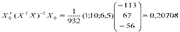 Наряду с интервальным оцениванием коэффициентов регрессии весьма важным для оценки точности определения зависимой переменной является построение доверительного интервала для функции регрессии или условного математического ожидания зависимой переменной Мх(y). Обобщая соответствующие выражения на случай множественной регрессии, можно получить доверительный интервал: