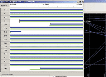 · в Редакторе сессий для каждой сессии выводятся данные по каждому спутнику. Это окно позволяет вам определить, имелись ли общие спутники в обоих сеансах данной сессии. В редакторе вы также сможете установить, были ли в ходе сессии или сеанса какие-либо пропуски в спутниковых данных.