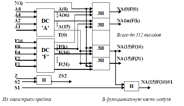 Дешифратор адресных операций: F 16, F 8, F 4, F 2, F 1.