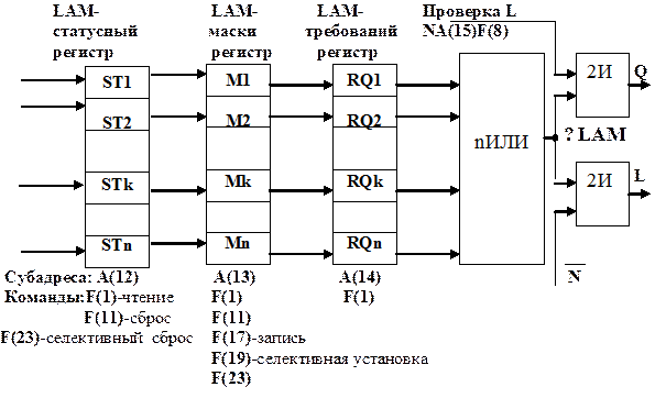 Число источников запроса n ≤24. Для контроля состояния отдельных LAM -источников используется шины данных чтения R.