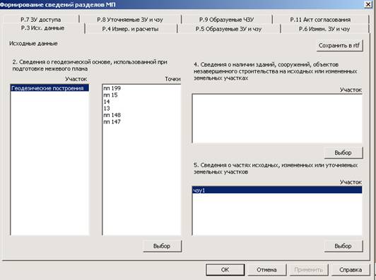 Для информации. Все ведомости (как результат заполнения разделов формы межевого плана) сохраняются в формате RTF (Microsoft Word). Далее пользователь может редактировать данные средствами Microsoft Word, а также выводить ведомость на печать.